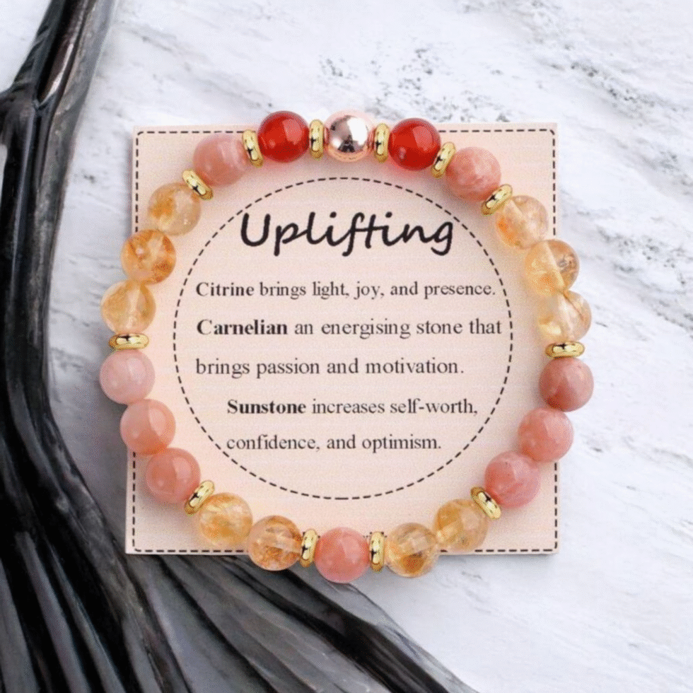 In moments of stress, heaviness, or emotional fatigue, sometimes all we need is a little lift — a spark to reignite our inner joy. The Uplifting Bracelet is designed to do just that. A wearable source of good vibes, this bracelet brings together a harmonious blend of gemstones that awaken the spirit, energize the mind, and uplift the heart.