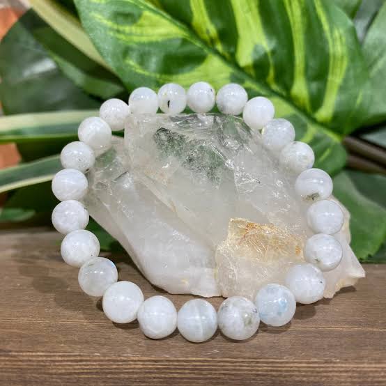 Introduction: This White Moonstone 8mm Bracelet showcases premium Sri Lankan adularia with exceptional blue adularescence (0.2% albite content). The optical phenomenon results from light scattering between alternating orthoclase and albite layers (90-110nm thickness).